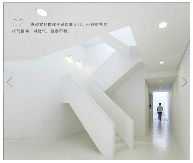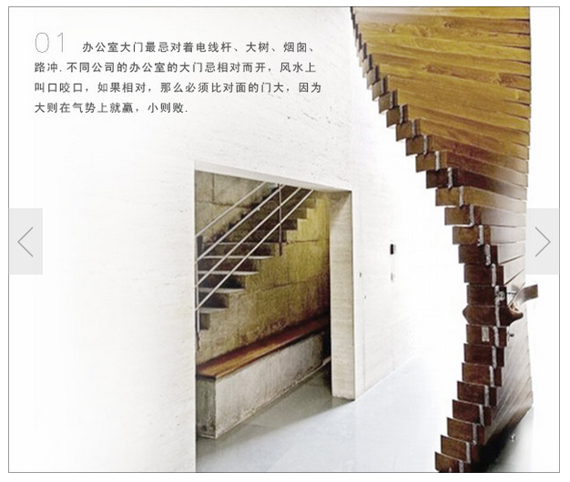 建筑物的形状亦是需要重点考察的内容之一,包括建筑本身的形状和周围能够看到的其他建筑的形状。这里有个非常典型的例子。在XX市,有一座写字楼,这座写字楼的外形很特别。远远望去,它的主楼就象是一座墓碑,而在前面的裙楼上方有一个半圆型的建筑,看上去就象是一座坟墓,更形象的是,在半圆型建筑的四周还有围栏,就象人民英雄纪念碑四周的围栏一样。而这个写字楼的外立面用的是暗灰色的石头,整座建筑显得比较陈旧,看上去灰蒙蒙的,给人的感觉就更象是一座坟墓。象这样一座建筑,阴气会比较重,对外出租相对就会比较困难,而在里面办公的公司,生意也肯定会受到不利的影响。另外,从五行配置上来看,该建筑物的顶部呈狼牙状,五行属火,下面的半圆型建筑五行属金,正门的门脸上有一块绿色的标记,五行属木,正好形成火克金、金克木,五行连环相克,这种五行相克的设计,会使本楼的气场遭到外部的克制和排斥,因此,对外出租就会更加困难。另外,在该大楼的后面有一个后门,是办公人员进出的主要出入口,在门口正对的地方有一个尖角朝上的景观,在门口的位置放置这么一个造型的物体,给人一种如梗在喉的感觉,就象一个鱼刺卡在喉中,严重阻挡了气的流动。这种设计违背了建筑风水的设计原理,应该算是一种非常失败的设计。这种建筑要想对外出租,恐怕会很难,而在里面办公的公司,由于里面的阴气太重,生意也不会太好。因此在选择住宅时,一定要留意楼的形状,对于一些形状怪异、样子奇特的楼房,不要贸然选择。